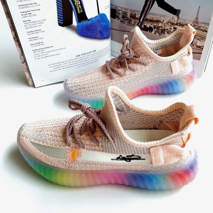 Giày thể thao nữ ROKUN9 đế 7 màu cao 4cm vải mềm thoáng khí mẫu mới 2020 phối mọi đồ cá tính đi chơi chạy bộ tập Gym