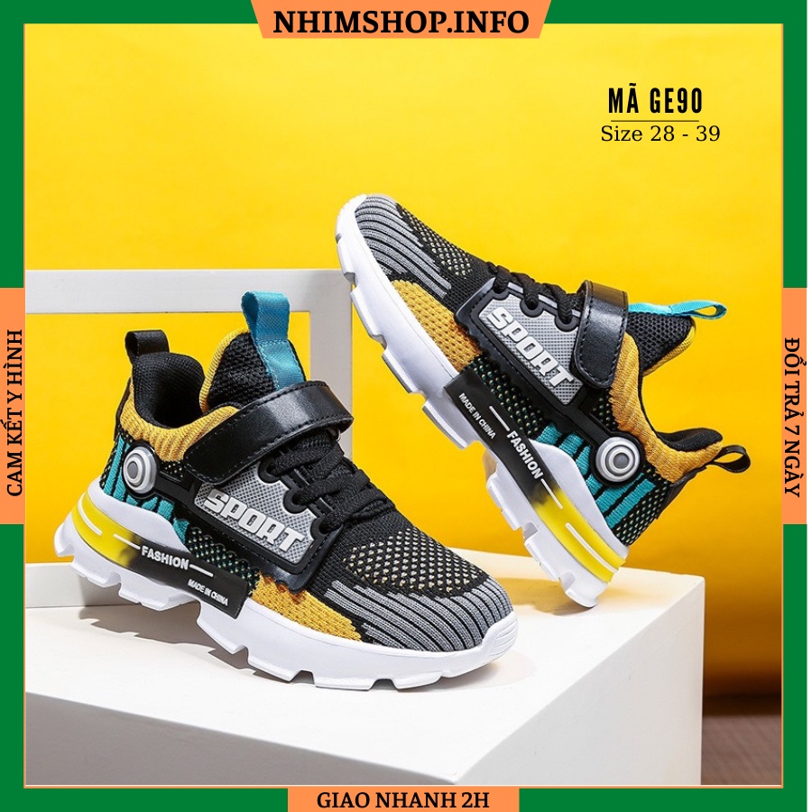 Giày thể thao cho bé trai 4 đến 12 tuổi siêu nhẹ kháng khuẩn êm chân chống trơn trẻ em đi học chạy bộ phong cách GE90 free ship