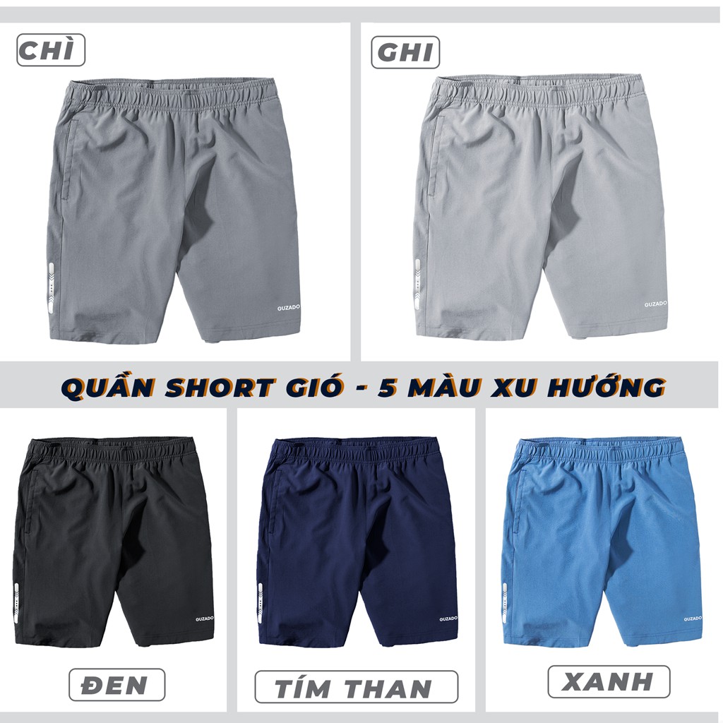 Quần Đùi nam Guzado GSR01 vải gió thể thao siêu nhẹ, co giãn thoải mái phù hợp chạy bộ, chơi tennis, mặc ở nhà free ship