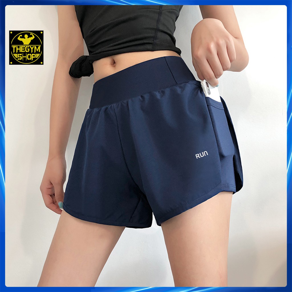 Freeship- Quần đùi tập gym yoga chạy bộ 2 lớp có túi đựng điện thoại AMIN AM036 quần short nữ vải mát mua tại đây
